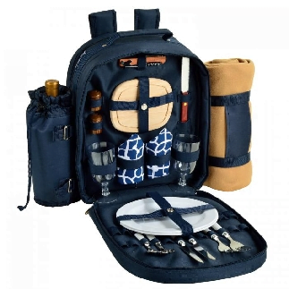Rated 5.00 out of 5Deluxe Equipped 4 Person Picnic Backpack w/Blanket – Trellis Blue
